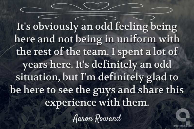 It's obviously an odd feeling being here and not being in uniform with the rest of the team. I spent a lot of years here. It's definitely an odd situation, but I'm definitely glad to be here to see the guys and share this experience with them.
