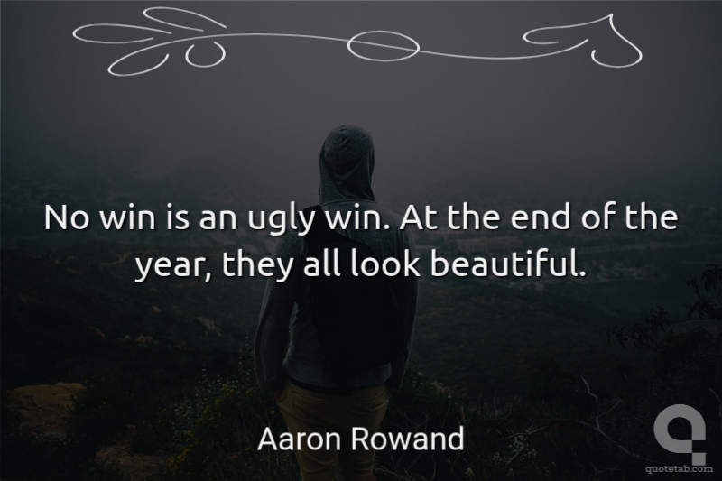 No win is an ugly win, because, at the end of the year, that's one more win you wouldn't have had. And they're all beautiful.