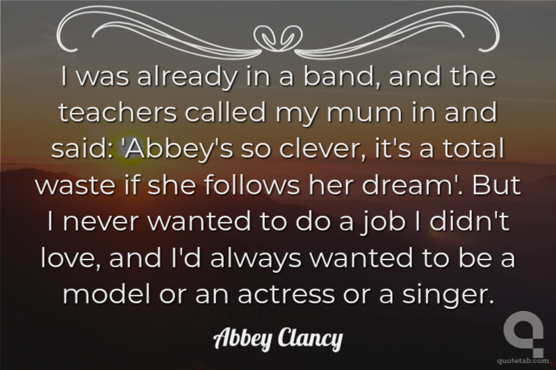 I was already in a band, and the teachers called my mum in and said: 'Abbey's so clever, it's a total waste if she follows her dream'. But I never wanted to do a job I didn't love, and I'd always wanted to be a model or an actress or a singer.