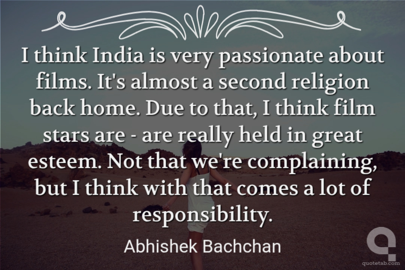 I think India is very passionate about films. It's almost a second religion back home. Due to that, I think film stars are - are really held in great esteem. Not that we're complaining, but I think with that comes a lot of responsibility.