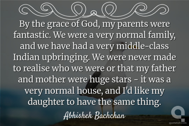 By the grace of God, my parents were fantastic. We were a very normal family, and we have had a very middle-class Indian upbringing. We were never made to realise who we were or that my father and mother were huge stars - it was a very normal house, and I'd like my daughter to have the same thing.
