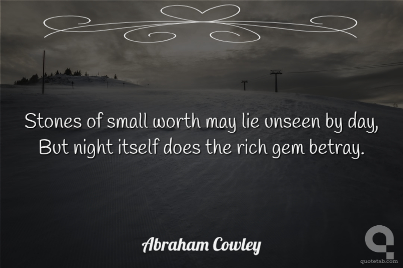 Stones of small worth may lie unseen by day, But night itself does the rich gem betray.
