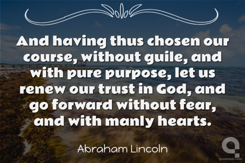 And having thus chosen our course, without guile, and with pure purpose, let us renew our trust in God, and go forward without fear, and with manly hearts.