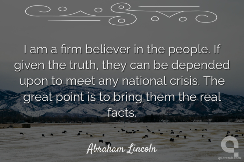 I am a firm believer in the people. If given the truth, they can be depended upon to meet any national crisis. The great point is to bring them the real facts.