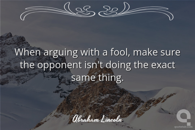 When arguing with a fool, make sure the opponent isn't doing the exact same thing.