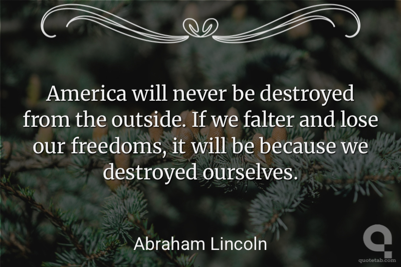 America will never be destroyed from the outside. If we falter and lose our freedoms, it will be because we destroyed ourselves.