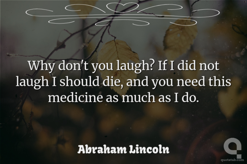 Why don't you laugh? If I did not laugh I should die, and you need this medicine as much as I do.