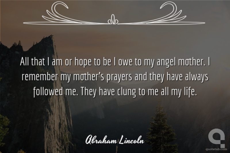 All that I am or hope to be I owe to my angel mother. I remember my mother's prayers and they have always followed me. They have clung to me all my life.