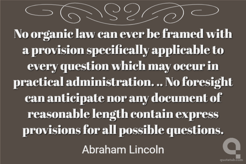 No organic law can ever be framed with a provision specifically applicable to every question which may occur in practical administration. .. No foresight can anticipate nor any document of reasonable length contain express provisions for all possible questions.
