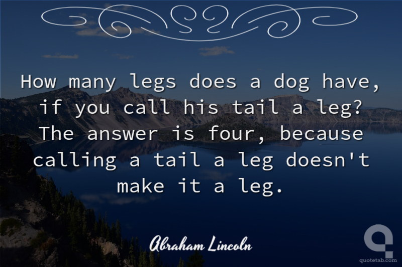 How many legs does a dog have, if you call his tail a leg? The answer is four, because calling a tail a leg doesn't make it a leg.