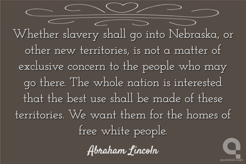 Whether slavery shall go into Nebraska, or other new territories, is not a matter of exclusive concern to the people who may go there. The whole nation is interested that the best use shall be made of these territories. We want them for the homes of free white people.