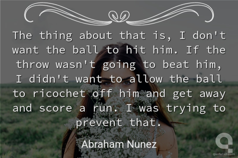 The thing about that is, I don't want the ball to hit him. If the throw wasn't going to beat him, I didn't want to allow the ball to ricochet off him and get away and score a run. I was trying to prevent that.