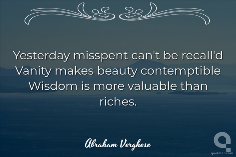 Yesterday misspent can't be recall'd Vanity makes beauty contemptible Wisdom is more valuable than riches.