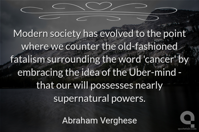 Modern society has evolved to the point where we counter the old-fashioned fatalism surrounding the word 'cancer' by embracing the idea of the Uber-mind - that our will possesses nearly supernatural powers.