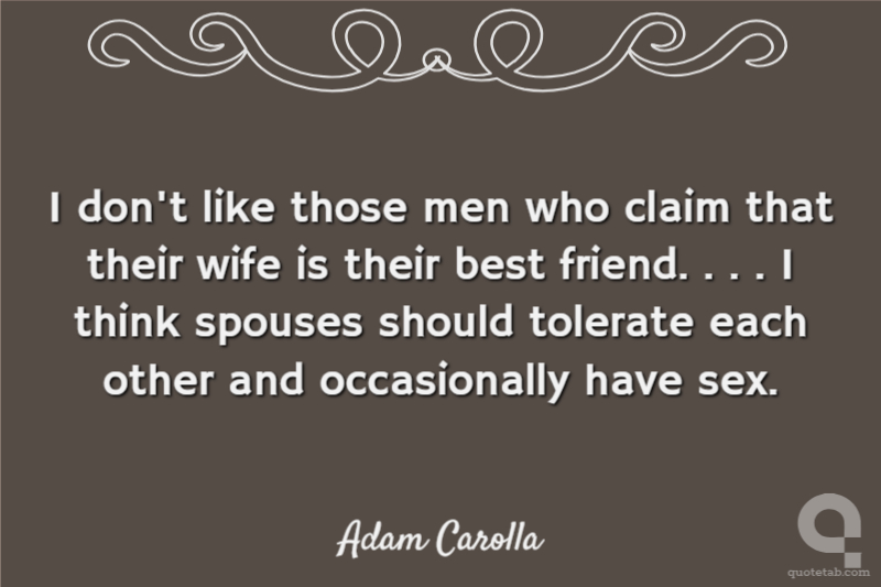 I don't like those men who claim that their wife is their best friend. . . . I think spouses should tolerate each other and occasionally have sex.