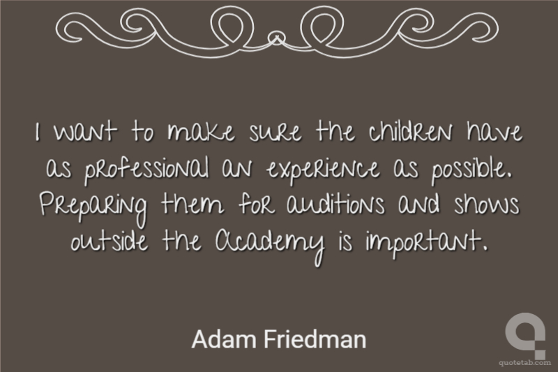 I want to make sure the children have as professional an experience as possible. Preparing them for auditions and shows outside the Academy is important.