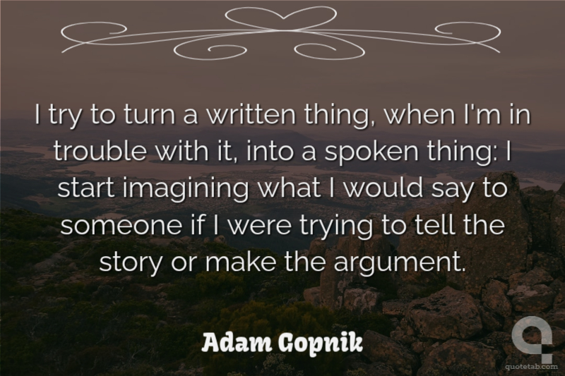 I try to turn a written thing, when I'm in trouble with it, into a spoken thing: I start imagining what I would say to someone if I were trying to tell the story or make the argument.
