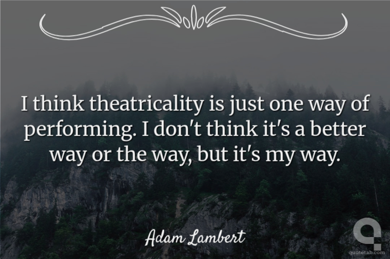 I think theatricality is just one way of performing. I don't think it's a better way or the way, but it's my way.