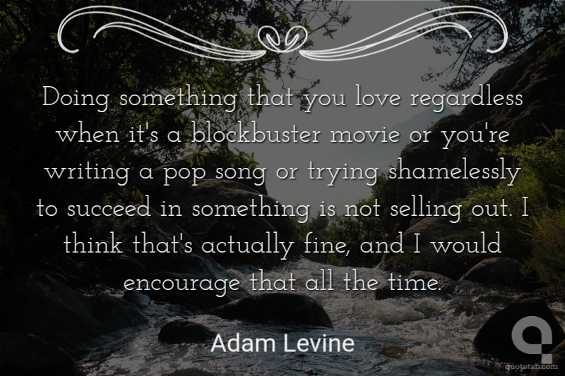 Doing something that you love regardless when it's a blockbuster movie or you're writing a pop song or trying shamelessly to succeed in something is not selling out. I think that's actually fine, and I would encourage that all the time.