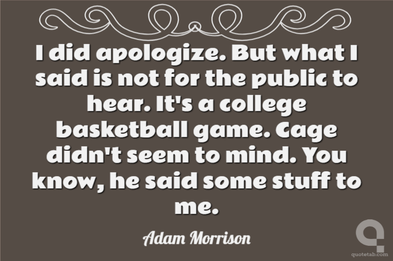 I did apologize. But what I said is not for the public to hear. It's a college basketball game. Cage didn't seem to mind. You know, he said some stuff to me.