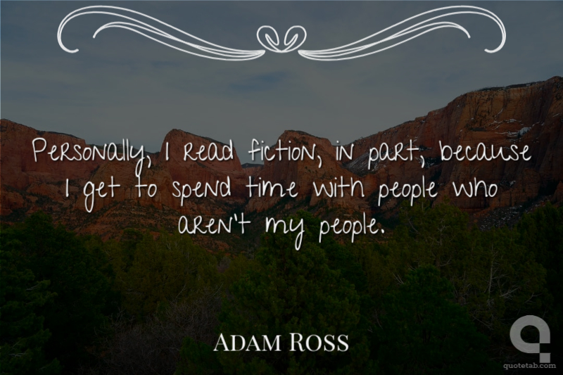 Personally, I read fiction, in part, because I get to spend time with people who aren't my people.