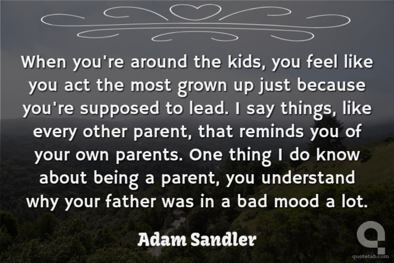 When you're around the kids, you feel like you act the most grown up just because you're supposed to lead. I say things, like every other parent, that reminds you of your own parents. One thing I do know about being a parent, you understand why your father was in a bad mood a lot.