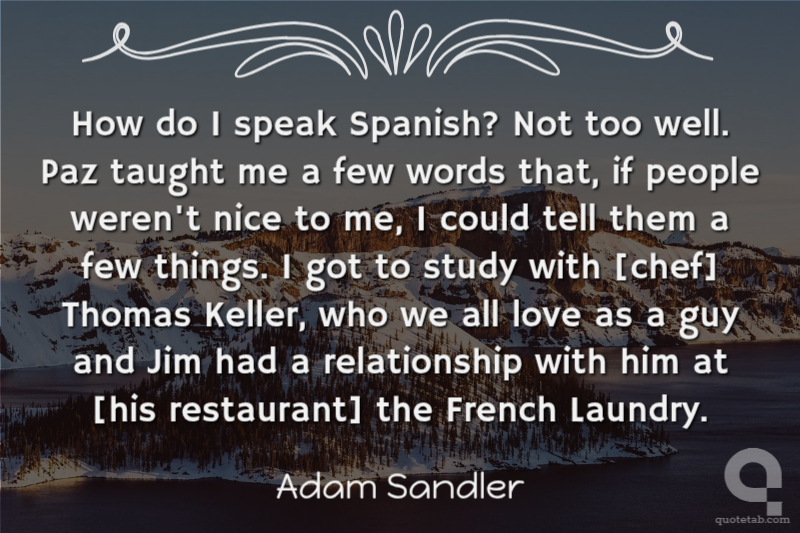 How do I speak Spanish? Not too well. Paz taught me a few words that, if people weren't nice to me, I could tell them a few things. I got to study with [chef] Thomas Keller, who we all love as a guy and Jim had a relationship with him at [his restaurant] the French Laundry.