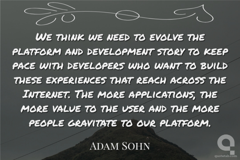 We think we need to evolve the platform and development story to keep pace with developers who want to build these experiences that reach across the Internet. The more applications, the more value to the user and the more people gravitate to our platform.