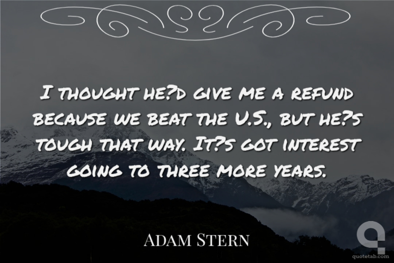 I thought he?d give me a refund because we beat the U.S., but he?s tough that way. It?s got interest going to three more years.