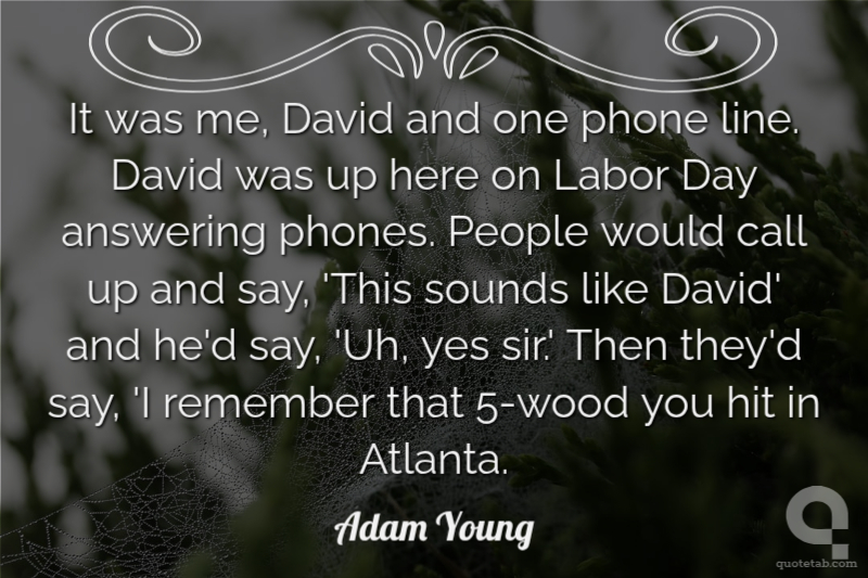 It was me, David and one phone line. David was up here on Labor Day answering phones. People would call up and say, 'This sounds like David' and he'd say, 'Uh, yes sir.' Then they'd say, 'I remember that 5-wood you hit in Atlanta.