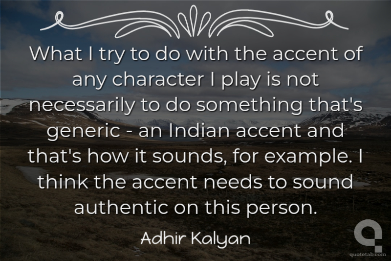 What I try to do with the accent of any character I play is not necessarily to do something that's generic - an Indian accent and that's how it sounds, for example. I think the accent needs to sound authentic on this person.