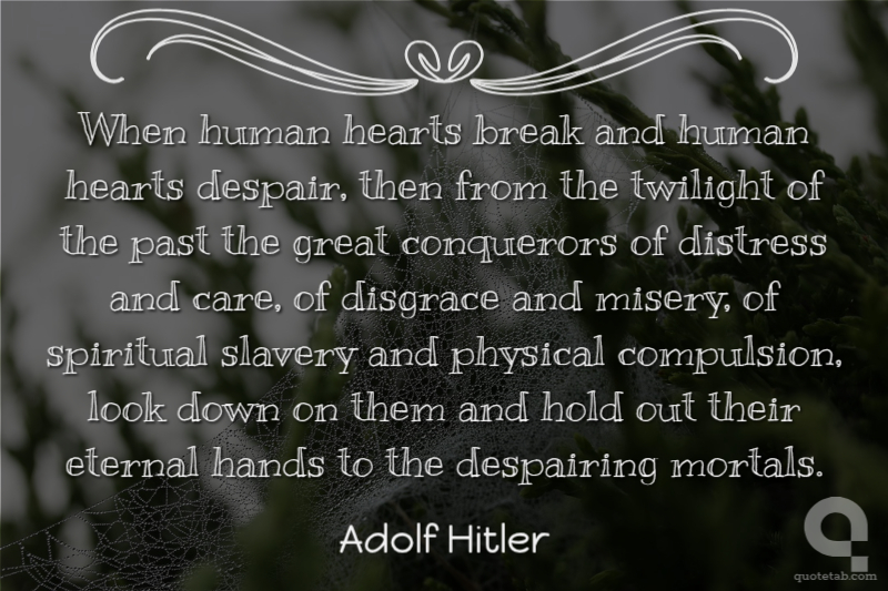 When human hearts break and human hearts despair, then from the twilight of the past the great conquerors of distress and care, of disgrace and misery, of spiritual slavery and physical compulsion, look down on them and hold out their eternal hands to the despairing mortals.