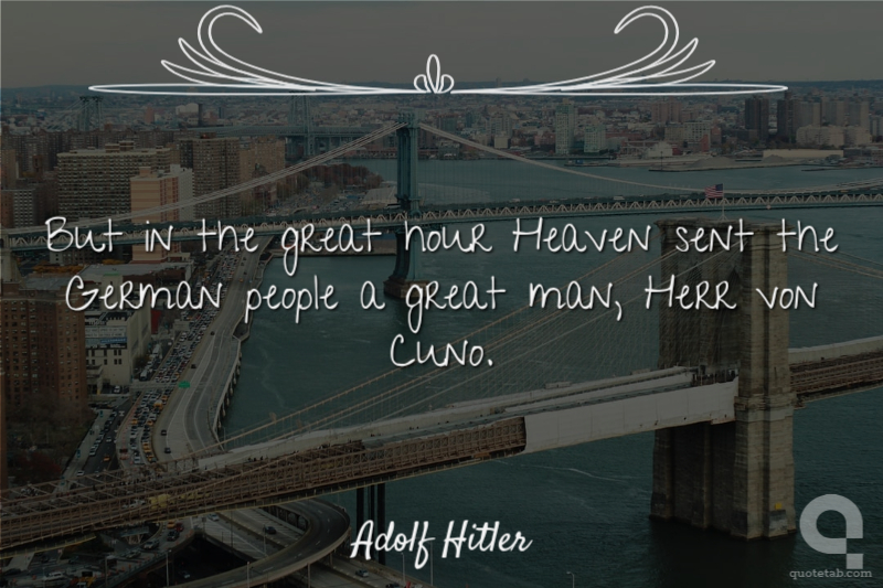 But in the great hour Heaven sent the German people a great man, Herr von Cuno.