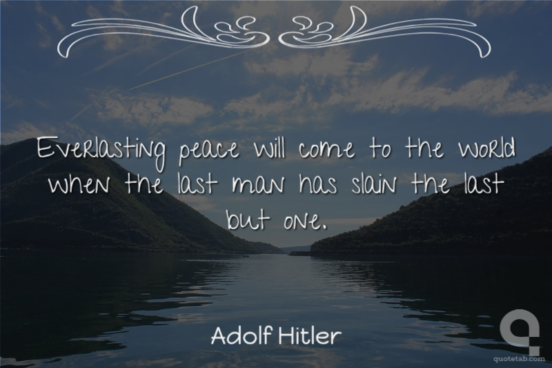 Everlasting peace will come to the world when the last man has slain the last but one.