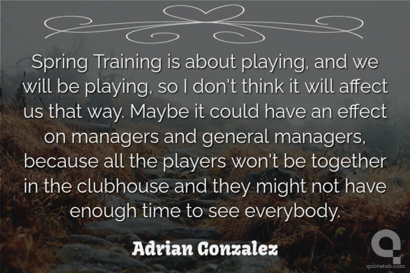 Spring Training is about playing, and we will be playing, so I don't think it will affect us that way. Maybe it could have an effect on managers and general managers, because all the players won't be together in the clubhouse and they might not have enough time to see everybody.