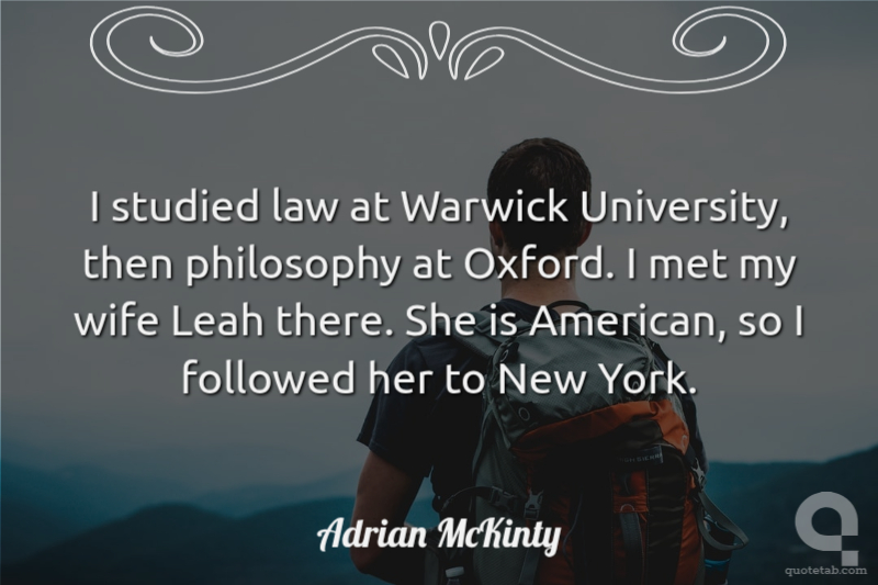 I studied law at Warwick University, then philosophy at Oxford. I met my wife Leah there. She is American, so I followed her to New York.