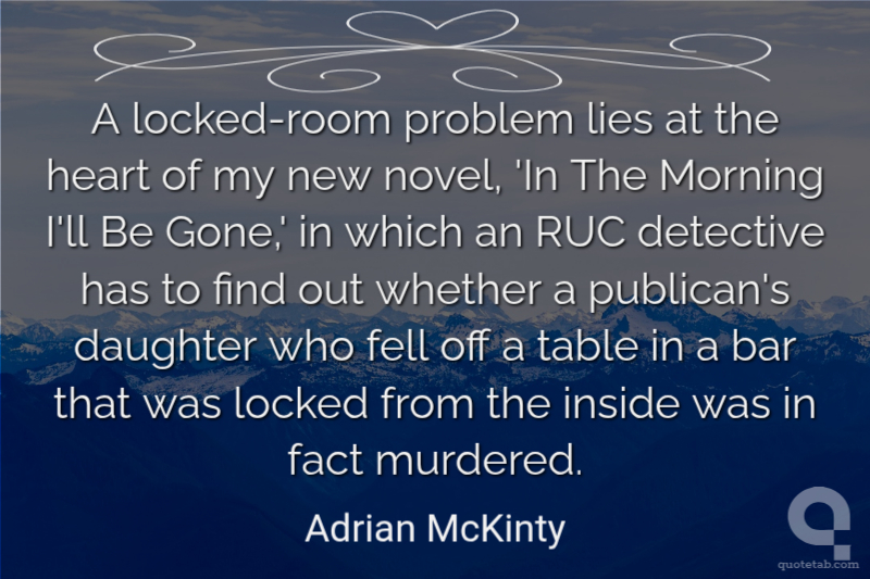 A locked-room problem lies at the heart of my new novel, 'In The Morning I'll Be Gone,' in which an RUC detective has to find out whether a publican's daughter who fell off a table in a bar that was locked from the inside was in fact murdered.