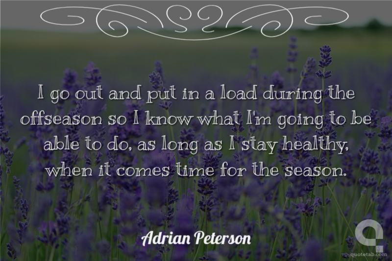 I go out and put in a load during the offseason so I know what I'm going to be able to do, as long as I stay healthy, when it comes time for the season.