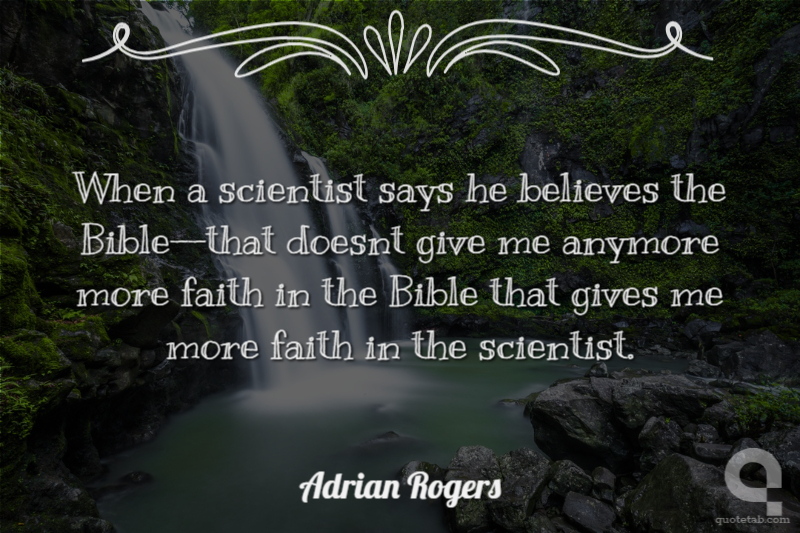 When a scientist says he believes the Bible--that doesnt give me anymore more faith in the Bible that gives me more faith in the scientist.