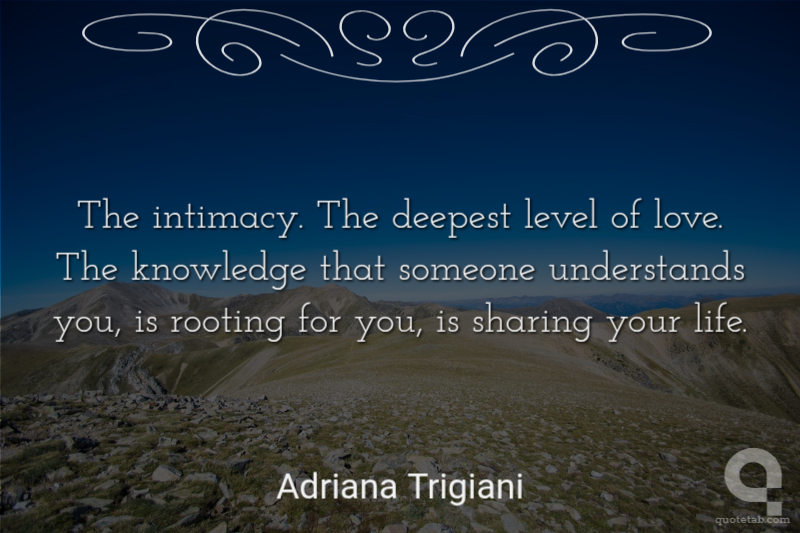 The intimacy. The deepest level of love. The knowledge that someone understands you, is rooting for you, is sharing your life.