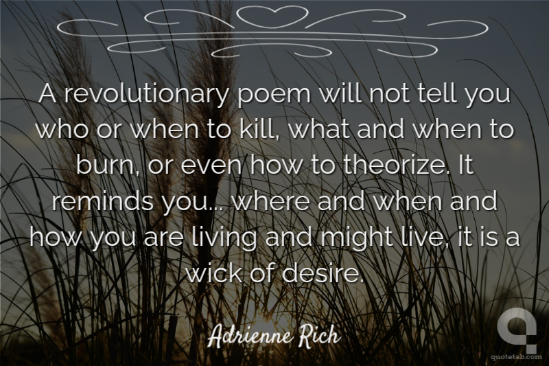 A revolutionary poem will not tell you who or when to kill, what and when to burn, or even how to theorize. It reminds you... where and when and how you are living and might live, it is a wick of desire.