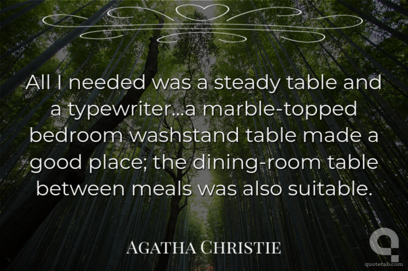 All I needed was a steady table and a typewriter...a marble-topped bedroom washstand table made a good place; the dining-room table between meals was also suitable.