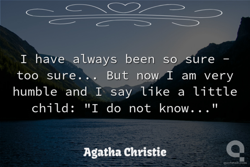 I have always been so sure - too sure... But now I am very humble and I say like a little child: "I do not know..."