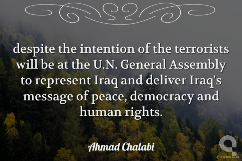 despite the intention of the terrorists will be at the U.N. General Assembly to represent Iraq and deliver Iraq's message of peace, democracy and human rights.