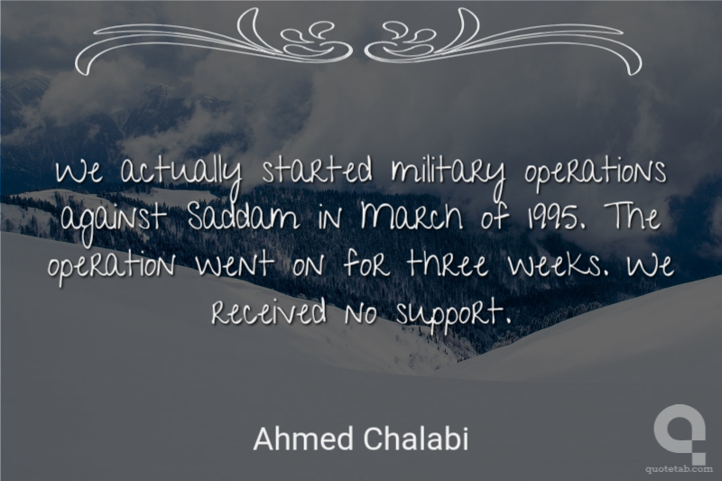 We actually started military operations against Saddam in March of 1995. The operation went on for three weeks. We received no support.