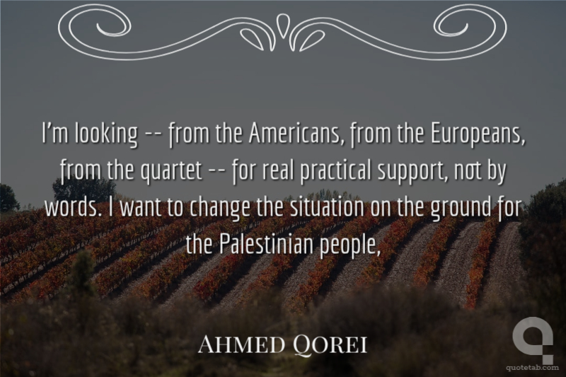 I'm looking -- from the Americans, from the Europeans, from the quartet -- for real practical support, not by words. I want to change the situation on the ground for the Palestinian people,