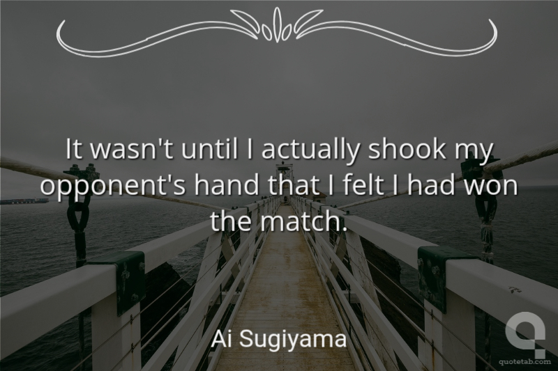 It wasn't until I actually shook my opponent's hand that I felt I had won the match.