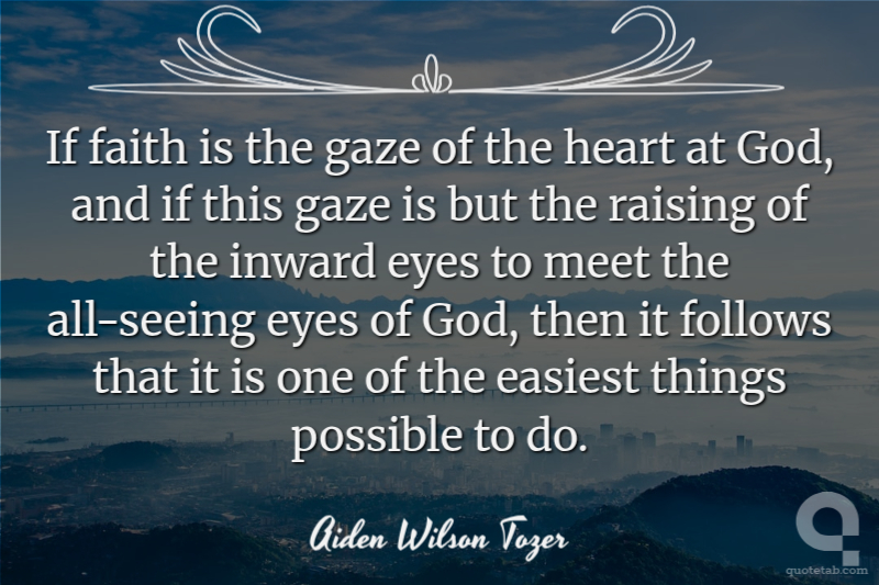 If faith is the gaze of the heart at God, and if this gaze is but the raising of the inward eyes to meet the all-seeing eyes of God, then it follows that it is one of the easiest things possible to do.