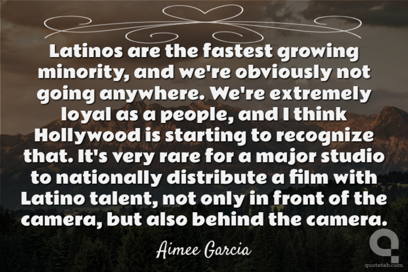 Latinos are the fastest growing minority, and we're obviously not going anywhere. We're extremely loyal as a people, and I think Hollywood is starting to recognize that. It's very rare for a major studio to nationally distribute a film with Latino talent, not only in front of the camera, but also behind the camera.