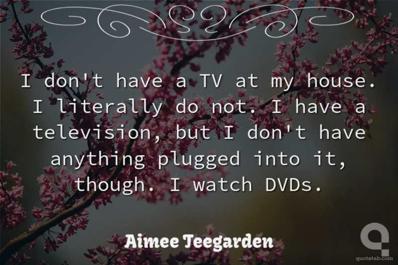 I don't have a TV at my house. I literally do not. I have a television, but I don't have anything plugged into it, though. I watch DVDs.